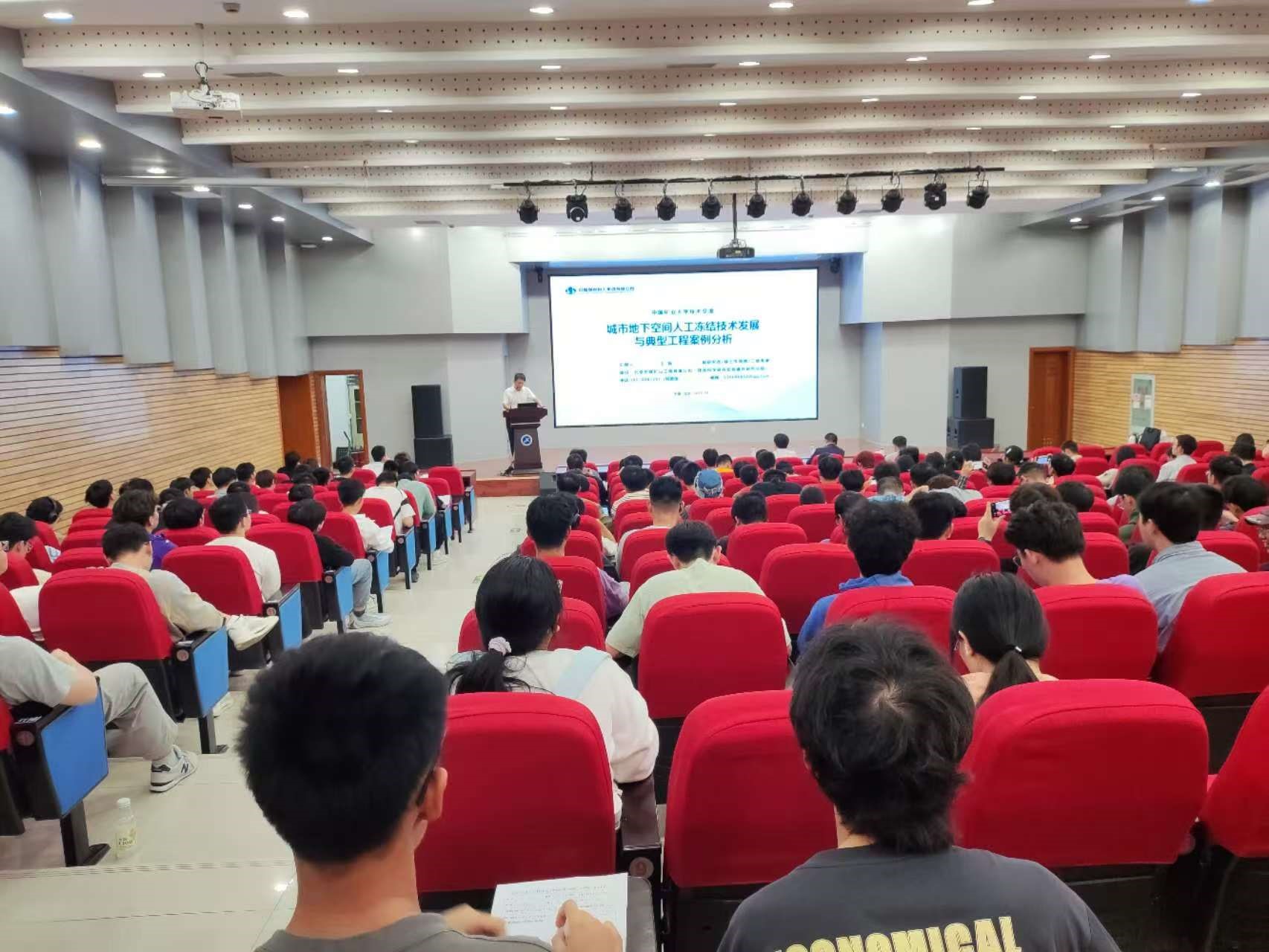 下午,在学院A108报告厅,程守业首先向同学们介绍了煤炭科学研究总院建井研究分院的企业概况、人才引进政策、培养与成长情况。紧接着,王磊做了“城市地下空间人工冻结技术发展与典型工程案例分析”的学术报告,他结合多年的工作经验和研究成果,介绍了十余个典型的城市地下冻结工程案例,展示了人工冻结技术在解决复杂地质条件、保障施工安全、提高施工效率等方面的独特优势。学术报告会由王迎超主持,包括青年教师、本科生、研究生等约150余人参加了本次报告会。随后,郭鹏介绍了建井分院在研究生的招生、培养、就业等方面的相关政策。
