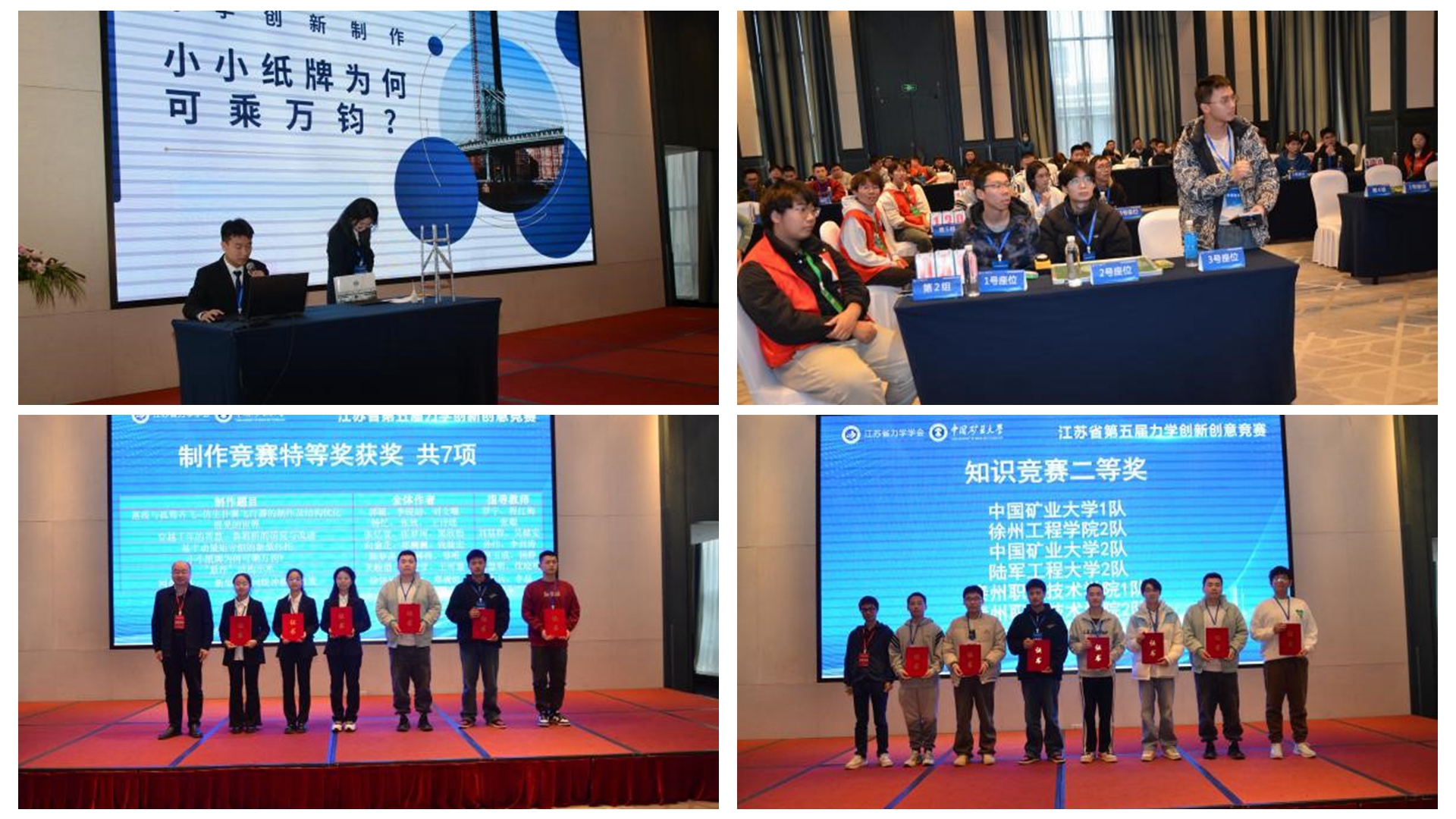 11月22日至24日,由江苏省力学学会、江苏省高等学校力学土建类教学指导委员会主办,FUN乐天使官方网站、深地工程智能建造与健康运维全国重点实验室和江苏省应用力学(FUN乐天使官方网站)中心承办,江苏东华测试技术股份有限公司、秦皇岛市协力科技开发有限公司赞助的江苏省第五届力学创新创意竞赛在江苏省徐州市举办。江苏省力学学会副理事长邬萱、副秘书长张姝姝,江苏省力学学会科普工作委员会主任委员王立峰教授、副主任委员赵玉成教授、副主任委员兼秘书长孙伟副教授等学会领导和来自江苏省高校的评审专家、嘉宾及省内参赛师生近100人参加了会议。
