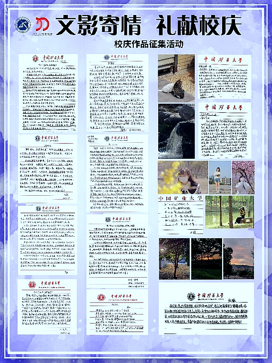 本次活动不仅丰富了广大学子的校园文化生活,更体现了矿大学子对母校的感恩之心。通过文字与摄影作品定格在校园内外成长的美好瞬间,展现矿大学子对于生活的热爱和向往,表达对母校的热爱之情。